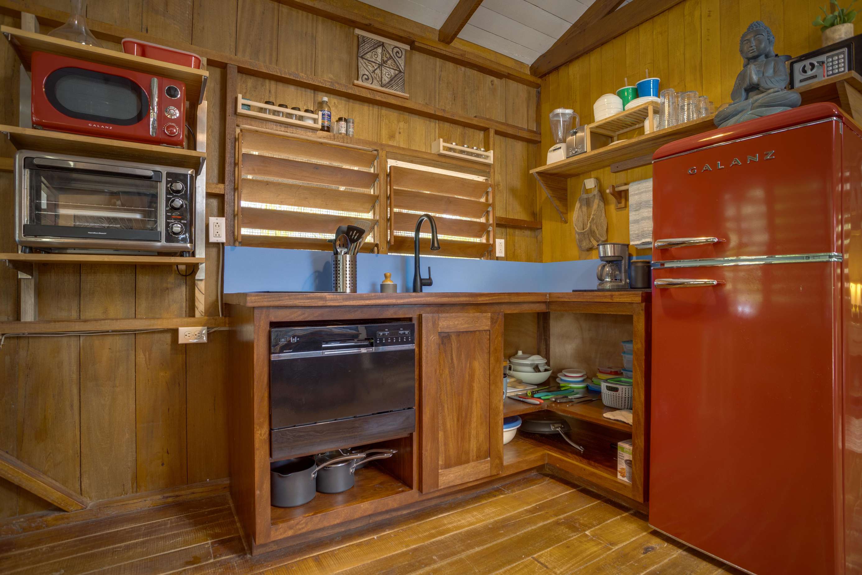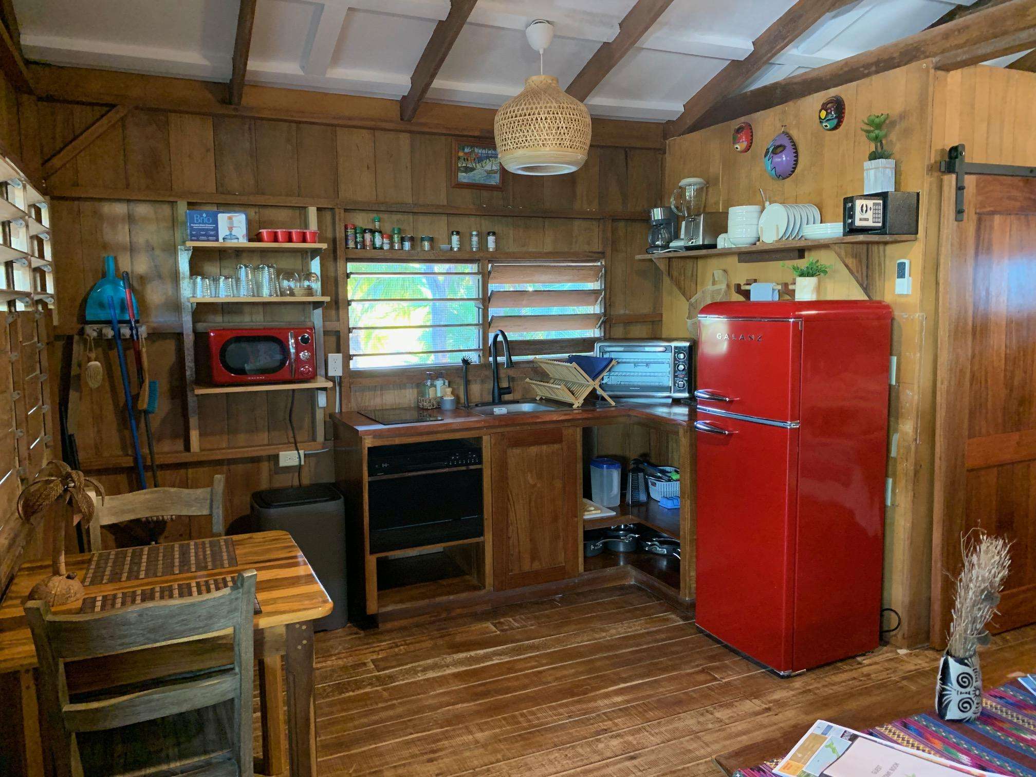 The bungalow will accommodate a maximum of 2 people. The kitchens are equipped with full size fridge, 2 burner stove, coffee maker, microwave, toaster, cooking utensils, blender, and other amenities to make your stay more comfortable.
